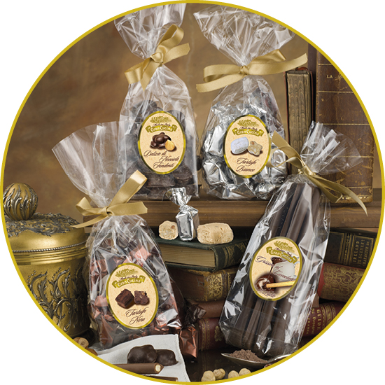 Utilizzando solo ed esclusivamente materie prime naturali di altissima qualità - latte, cacao e zucchero - senza aggiunta di alcun additivo chimico, emulsionante, conservante, colorante o burro di cacao, abbiamo creato una linea di creme al cioccolato fondente unica e introvabile sul mercato, con 3 anni di conservazione a temperatura ambiente. Utilizzabile per ogni tipologia di piatto dolce, ha un sapore unico e apprezzato da chiunque ami la delicatezza dell’aroma cacao abbinata alla cremosità del latte, che si sposano creando una crema morbida e sfiziosa. A completare questa linea, occorre ricordare le nostre prestigiose praline, dai Cuneesi al Rhum, con all’interno una tuonante crema a base di rhum e ricoperti da un croccante velo di pregiato cioccolato fondente, ai Tartufi Bianchi e Neri, dai Gianduja cuore morbido, cioccolato croccante e pregiato a ricoprire una delicata e morbida crema di nocciola, ai Grissini al cioccolato. Rinomati sono anche i pasticcini, ideali da gustare come dessert o come accompagnamento a un buon caffè: i nostri baci di dama, celeberrimi pasticcini piemontesi, anche nella versione al cioccolato, i deliziosi e croccanti rustici alla nocciola e i nostri squisiti pasticcini al moscato e al mais.