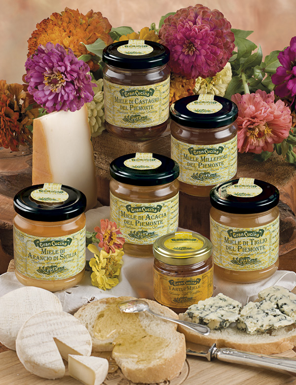 Il miele di Tiglio, di Castagno e il miele Millefiori del Piemonte sono il fiore all’occhiello dei mieli italiani, in quanto la loro produzione è sempre legate alle condizioni climatiche. Ogni anno la produzione non riesce a soddisfare le richieste del mercato e pertanto l’origine italiana e in particolare quella piemontese conferisce loro un valore aggiunto! Sono perfetti con i formaggi (come il Castelmagno, il Parmigiano reggiano, il Raschera e molti altri), eccezionali per preparare cappuccini, caffè, latte e per godersi quindi una colazione speciale oppure utilizzati come sostituti dello zucchero nelle torte o in altri dolci. Quando questi mieli incontrano il lardo o altra carne, creano dei piatti ideali per aperitivi e stuzzichini. (cartoni: 12 pezzi da 110 g)